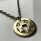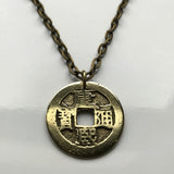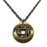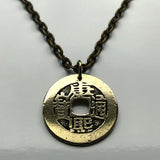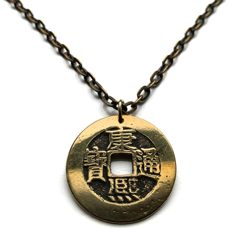 antique relic China Empire cash holed coin pendant necklace Chinese fashion jewelry Kangxi Emperor Manchu Qing Dynasty Sheng Tsu Nanchang Jiangxi Taiwan Manchuria Mongolia Tibet relic Good Luck pendant Sheng Tsu Manchu currency Jiangxi Nanchang Shanghai Beijing High Qing Jingren Palace the Forbidden City Gùgōng Xuantong Guangdong Sichuan Jiangsu Harbin Zibo Tianjin Guangzhou Shenzhen Chengdu Nanjing Hubei Chongqing Aisin Gioro Xun Di