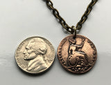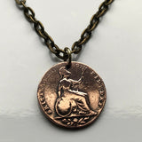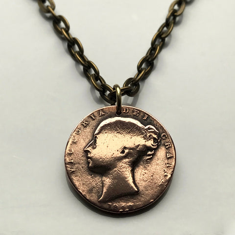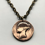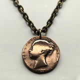 1840's United Kingdom Great Britain 1 Farthing coin pendant Queen Victoria Britannia Regina England Yorkshire Leeds Scotland Wales Ireland British n002237