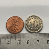 • demonetized {no longer in circulation} polished Copper-nickel coin