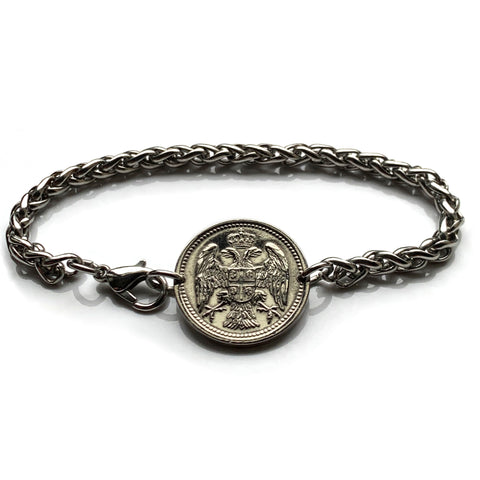 Serbia Srbija coin stainless steel wheat braided chain bracelet fashion jewelry Serbian double headed eagle Belgrade Novi Sad Nis Zlatibor Prizren Sokobanja Nis Nisava South Backa Balkans South Slavic Serbian Kragujevac Subotica Zrenjanin Vojvodina Yugoslavia Sumadija Kosovo Jablanica district Nemanjic dynasty