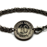 1912! Serbia Srbija 10 Para coin stainless steel wheat braided chain bracelet Serbian double headed eagle Belgrade Srbija Kosovo Yugoslavia Novi Sad Vojvodina Kragujevac Subotica Niš city Zrenjanin Nišava Nemanjić dynasty Serbs b000125