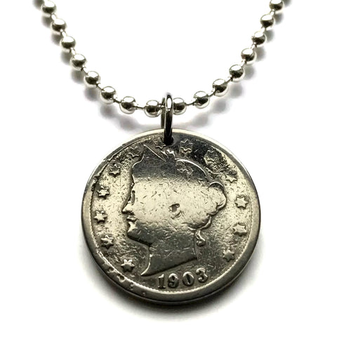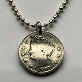 1903! United States 5 Cent coin pendant Lady Liberty Head Nickel V America Statue of Liberty New Hampshire Massachusetts Rhode Island Connecticut New York New Jersey Pennsylvania Delaware Maryland Virginia North South Carolina Georgia Florida n001239