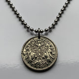 1895 Austria Österreich 20 Heller coin pendant Austrian eagle Austro Hungarian empire Habsburg Vienna Salzburg Graz Linz Innsbruck Villach Tyrol Styria Wels Sankt Pölten Carinthia Sölden n002610