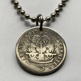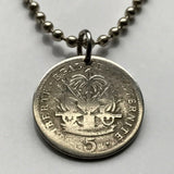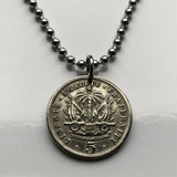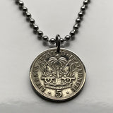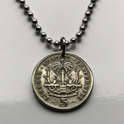 1905 Haiti 5 Centimes coin pendant Haitian Port-au-Prince flags caribbean island coat of arms Hispaniola French Creole France n001357