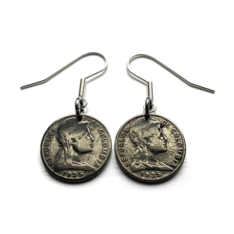 1935 Colombia 1 Centavo coin hook earrings Libertad Phrygian cap Bogotá Medellín Cali Barranquilla Cartagena Cúcuta Soacha Soledad Bucaramanga Bello Ibagué Manizales Montería Valle del Cauca Antioquia Pereira Caldas Armenia Muisca Chibcha Quimbaya e000586
