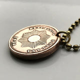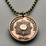 1936 Peru 2 Centavos coin pendant Peruvian sun Lima Ica Puno Cajamarca Pucallpa Piura Ayacucho Chincha Huánuco Tarapoto Callao Nazca n000781