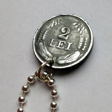 1941 Romania 2 Lei coin pendant necklace World War 2 era Romanian crown Bucharest Cluj-Napoca Iasi Constanta Wallachia Moldavia Timisoara Transylvania Bran Vlad Dracula Castle Sibiu Brasov Peles Castle Roman Dacia Michael the Brave Vlachs n001140
