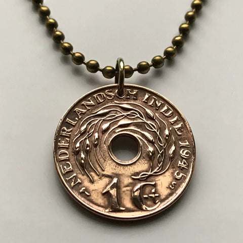 1945 Indonesia Netherlands Dutch East Indies Cent coin pendant rice plant Jakarta Borneo Batam Prambanan Borobudur Bali Minangkabau n000061