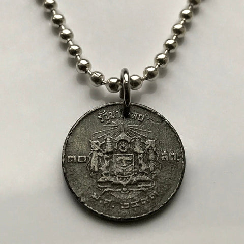 1950 Thailand Siam 10 Satang coin pendant Thai temple Bangkok Siamese Airavata elephant Indra Indochinese Wat Chaiwatthanaram asian n003033
