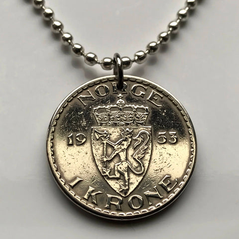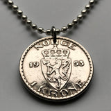 1955 Norway 1 Krone coin pendant Norge lion Den norske løve Oslo Nordic Fredrikstad/Sarpsborg Viken Tromsø Vestre Aker Norsemen Bodø n001230