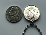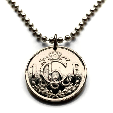 1952 Luxembourg Letzeburg 1 Franc coin pendant initial Ch Grand Duchess Charlotte Luxembourgish crown Esch-sur-Alzette Differdange Dudelange Wormeldange Grund Diekirch Schengen Petange Rumelange n000768