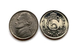 • demonetized {no longer in circulation} polished Copper-nickel coin