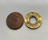 1955 Nepal 4 Paisa coin pendant Bullet Paisa Gurkha soldiers World War 2 rifle bullet casings Khukuri Kathmandu Himalayas Shah Dynasty Kingdom of Gorkha Khas Kura Devanagari alphabet Nagari Tibet Brahmi Khas Mount Everest Gorkhas Imperial Japanese n002093