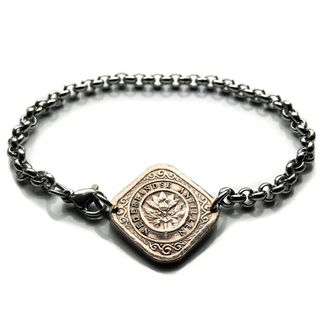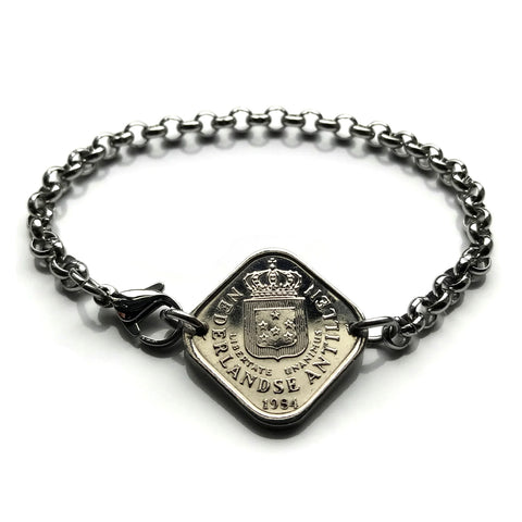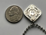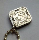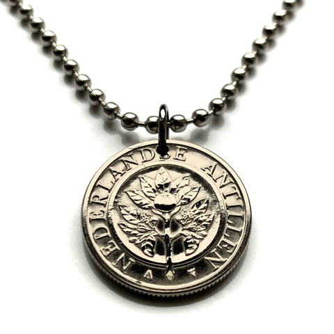 1970 Netherlands Antilles Curacao 5 Cents coin pendant Orange blossom Willemstad Holland Amsterdam Dutch floral seashell wave Papiamentu Caribbean Pais Kòrsou Curaçaoan n000969