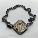 1970 Netherlands Antilles Curacao 5 Cents coin bracelet Orange blossom flower Willemstad Holland Amsterdam seashells waves caribbean b000010