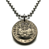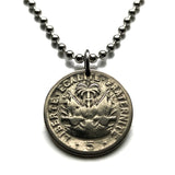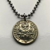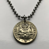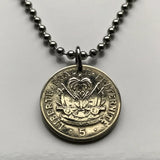 1958 Haiti 5 Centimes coin pendant Haitian flags cannons palm trees Port-au-Prince Cap-Haïtien Carrefour Delmas Pétion-Ville Port-de-Paix Croix des Bouquets Jacmel Léogâne Les Cayes Citadelle Laferrière Sans-Souci Palace Minot Artibonite Gonaïves n001510