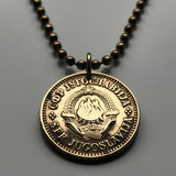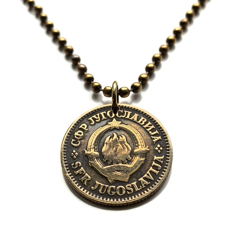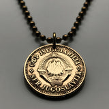 1965 Yugoslavia Jugoslavija 10 Para coin pendant necklace Serbia Srbija Croatia Macedonia Slovenia Montenegro Bosnia and Herzegovina Kosovo Belgrade Sarajevo Zagreb Skopje Ljubljana Vojvodina Podgorica Split Sušak South Slavic Slavs Balkans n001553