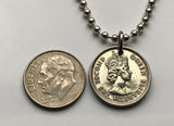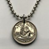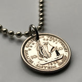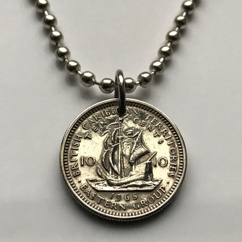 1956 British East Caribbean States 10 Cents coin pendant necklace jewelry Golden Hind Antigua Barbuda Dominica Grenada Saint Lucia Saint Vincent Grenadines Saint Kitts Nevis Anguilla Montserrat Martinique Trinidad Barbados n000808