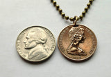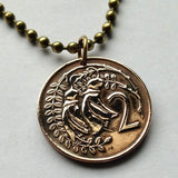 1967 New Zealand 2 Cent coin pendant Kowhai woody legume tree national flower Auckland Christchurch Wellington Hamilton Tauranga Maori Lower Hutt Dunedin Taonga Queenstown Hahei Waikato Milford Sound Rotorua Palmerston North Southern Cross n000094
