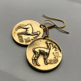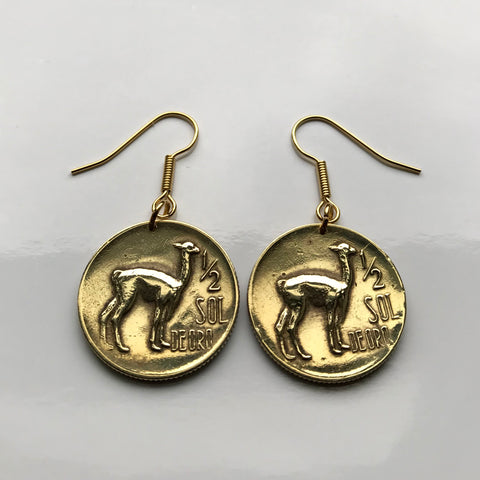 Peru 1/2 Sol coin earrings jewelry Peruvian llama alpaca vicuña Cuzco MachuPicchu Quechua Arequipa Trujillo Ollantaytambo Cajamarca Lambayeque Sacsayhuamán Caral Iquitos Nazca Huaraz Lima Inca e000055