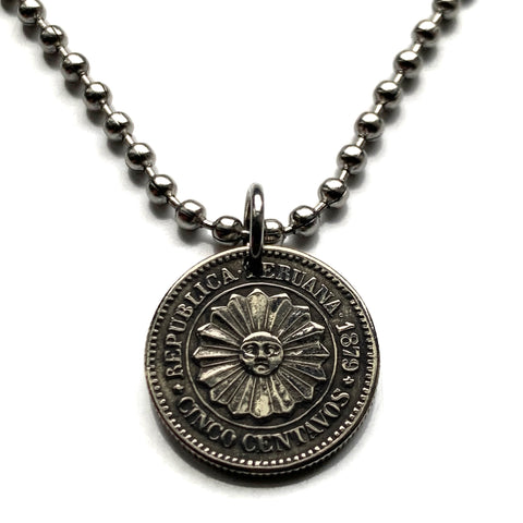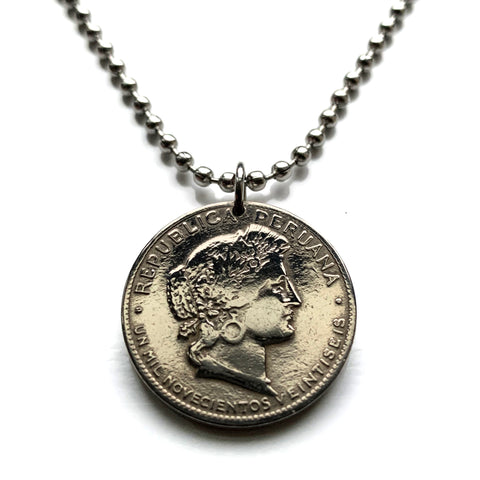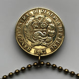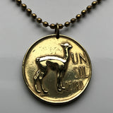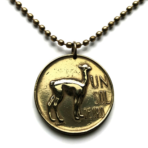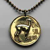 1974 Peru 1 Sol coin pendant Peruvian llama vicuña alpaca Cuzco Machupicchu Camel escudo Peruano Lima Inca ceviche necklace n000694