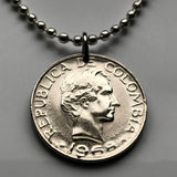 1968 Colombia 20 Centavos coin pendant necklace jewelry General Santander Bogotá Medellín Cali Barranquilla Cartagena Valle del Cauca Soledad Bello Ibagué Cúcuta Antioquia Bucaramanga Manizales Caldas Villavicencio Pereira Armenia Pereira Soacha n002502