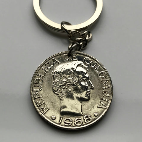 1968 Colombia 50 Centavos coin pendant necklace jewelry or keychain General Santander Bogotá Medellín Cali Barranquilla Cartagena Columbia Colombiana necklace n002979