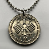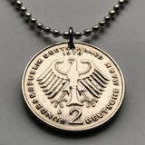 1983 Germany Deutschland 2 Mark coin pendant necklace German black eagle Berlin Hamburg Munich Cologne Frankfurt Stuttgart Düsseldorf Dortmund Leipzig Bremen Dresden Rothenburg Heidelberg Hanover Saxony Essen Nuremberg Brandenburg Bonn Bavaria n002460