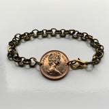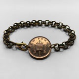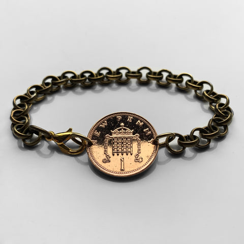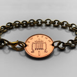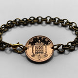 1994 England United Kingdom Great Britain 1 Penny coin bracelet jewelry English Beaufort crowned Portcullis chains Henry VII Tudor badge Tower of London Westminster Palace Monk Bar York Amberley Castle Kent Hever Castle Tower Bridge British b000123
