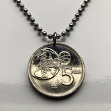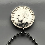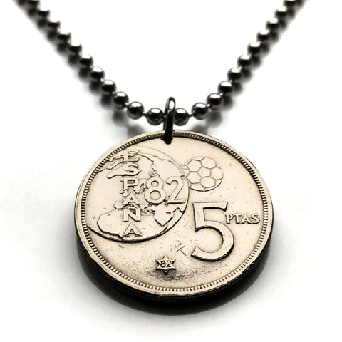 1980 Spain 5 Pesetas coin pendant Copa Mundial de futbol España 1982 World Cup Camp Nou Santiago Bernabéu Madrid Barcelona Sarria Stadium Coruña Gijón Oviedo Alicante Bilbao Valencia Zaragoza Sevilla Malaga Italy Wolrd Champions n001675