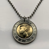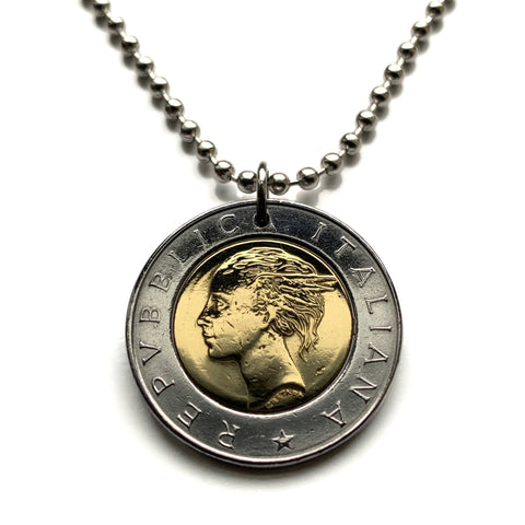 1982-1995 Italy 500 Lire Italian coin pendant necklace jewelry Roman god Mercury Rome Florence Milan Venice Bologna Napoli Torino Genoa Palermo Bergamo Modena Siena Bari Catania Messina Padua Trieste Taranto Parma Salerno Treviso Pisa n000152