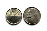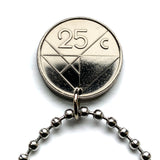 1999 Aruba 25 Cent coin pendant Netherlands Antilles Oranjestad San Nicolaas Dutch West Indies Caribbean ABC island Papiamento white sandy beaches Baby Eagle Palm Flamingo Manchebo Axrashi Malmok beach Land Aruba Noord Santa Cruz Savaneta Paradera n002163