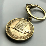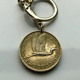 1990 New Zealand 2 Dollar coin pendant Kotuku white heron bird te reo Māori Polynesia Oceania Christchurch haka dance Milford Sound n003087