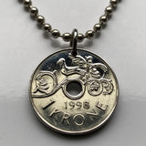 1998 Norway Norge Noreg 1 Krone coin pendant necklace jewelry Norwegian crown Norsk bird Setesdal Oslo Bergen Stavanger Sandnes Bokmal Nynorsk Alesund Nordic Scandinavia Viking Norse Den norske løve Trondheim Valle n000511