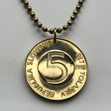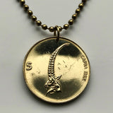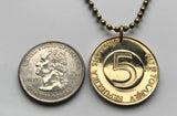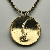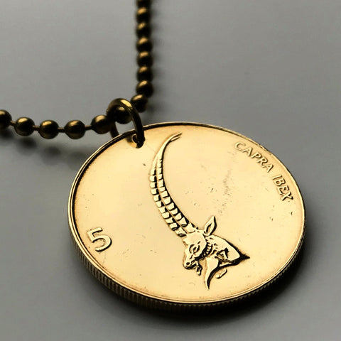 1993 Slovenia Slovenija 5 Tolarjev coin pendant necklace Slovene jewelry Alpine ibex steinbock wild mountain goat Ljubljana Velenje Novo Mesto Lake Bled Postojna Ptuj Cave Planica Julian Alps n002758