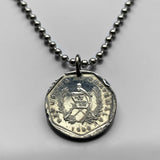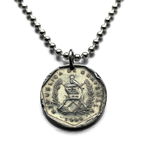 1999 Guatemala 1 Centavo coin pendant necklace jewelry resplendent Quetzal bird rifles espadas Chapín Villa Nueva Guate Central America K’iche' Mixco Villa Nueva Escuintla Huehuetenango Jutiapa Petapa Tikal Quiriguá Mayas n003683