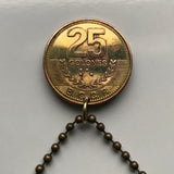 2007 Costa Rica 25 Colones coin pendant necklace jewelry San Jose Puerto Limón Alajuela Liberia Puntarenas Desamparados Guanacaste San Vicente Barranca Paraiso Heredia ticos Central America n003255