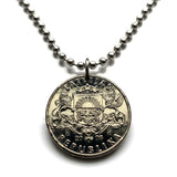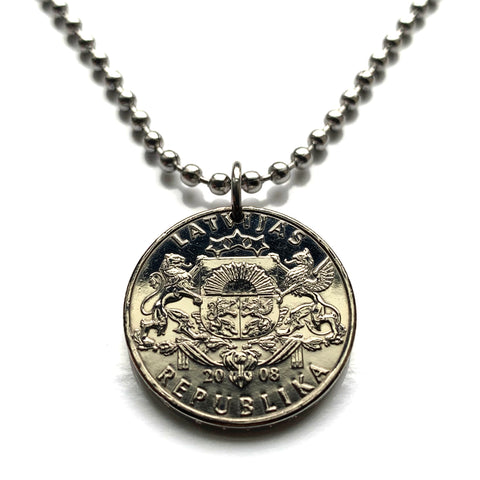 1992 Latvia Latvija 1 Lats coin pendant necklace red lion silver griffin salmon Riga Daugavpils Liepāja Jelgava Jūrmala Ventspils Livonian Letts Semigalia Rēzekne Ogre Selonia Rēzekne Valmiera Vidzeme Latgale Kurzeme Latgalia Courland Zemgale n003715