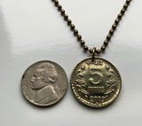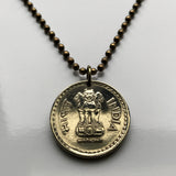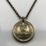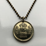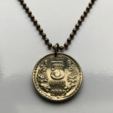 2009 India 5 Rupees coin pendant necklace jewelry Sarnath Ashoka Lion Capital Pillar Bombay Dharma Pune Bangalore Varanasi Ganges Punjabi Hindi Hindu n003566