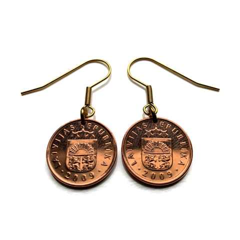2009 Latvia Latvija 2 Santimi coin earrings red lion silver griffin Riga Riga Daugavpils Liepāja Jelgava Jūrmala Ventspils Livonian Letts Semigalia Rēzekne Ogre Selonia Rēzekne Valmiera Vidzeme e000327