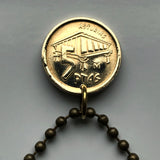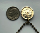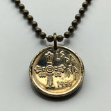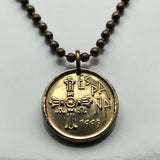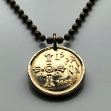 1995 Spain España 5 Peseta coin pendant necklace Spanish jewelry Asturias Cruz de la Victoria Victory Cross Asturian Cross paneras hórreo barn Oviedo Gijón Avilés Reconquista Battle of Covadonga Pelagius Christendom Cangas de Onís Galicia n000761