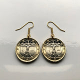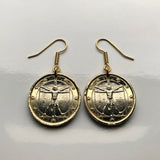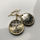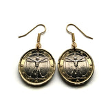Italy 1 Euro coin earrings jewelry Vitruvian Man Leonardo da Vinci Vitruvius Canon of Proportions human body Rome Florence Venice Milan Torino Napoli Palermo Matera Amalfi Coast Pisa Siena Parma e000136