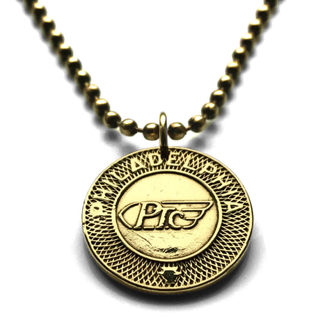 1950-1964 Philadelphia Transportation Company PTC Pennsylvania rapid transit token pendant electric bus tram streetcars trackless trolley Market Frankford L line Broad Street Delaware River Bridge Line Front Street Locust Street South Street SEPTA n002890