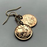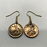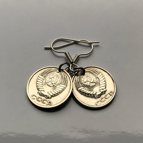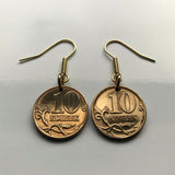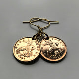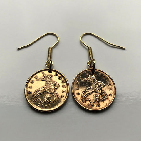 Russia 10 Kopecks coin earrings Saint George on horseback dragon slayer Moscow Saint Petersburg Novosibirsk Yekaterinburg Kazan Sochi Samara Kievan Novgorod Christian martyr Crusade Cossack e000389