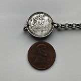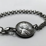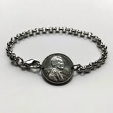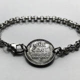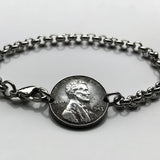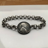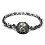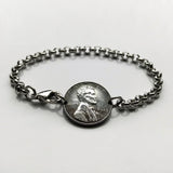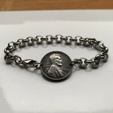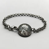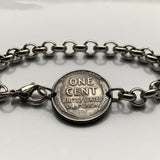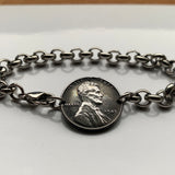 USA 1943 Steel Penny 1 Cent coin stainless steel rolo link bracelet World War 2 era Allies Abraham Lincoln wheat steelie magnetic coin Americana Victory b000099