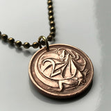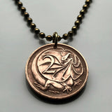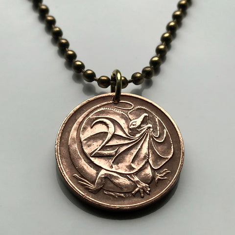 Australia 2 Cents coin pendant necklace fashion jewelry Frill-necked lizard reptile Sydney Melbourne Perth Canberra Brisbane Adelaide Darwin Queensland Victoria Frilled Dragon bicycle lizard Hobart Tasmania n000605