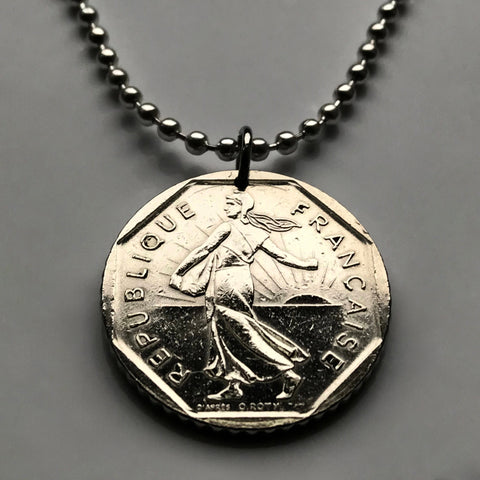 1982 France 2 Francs coin pendant necklace jewelry La Semeuse the Sower & seed French jewelry Paris Marseilles Lyon Toulouse Mont Saint-Michel Nice Strasbourg Bordeaux Versailles Le Havre Rennes Reims Toulon n000369