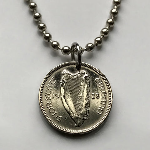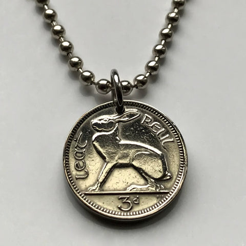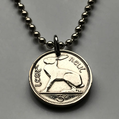 1928 Ireland Éire 3 Pence coin pendant necklace Irish rabbit hare cute bunny Gaelic harp Cláirseach Dublin Cork Limerick Waterford Ulster Carlow Hibernia Galway Munster Guinness St Patrick's n002996