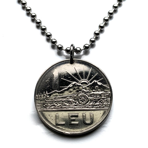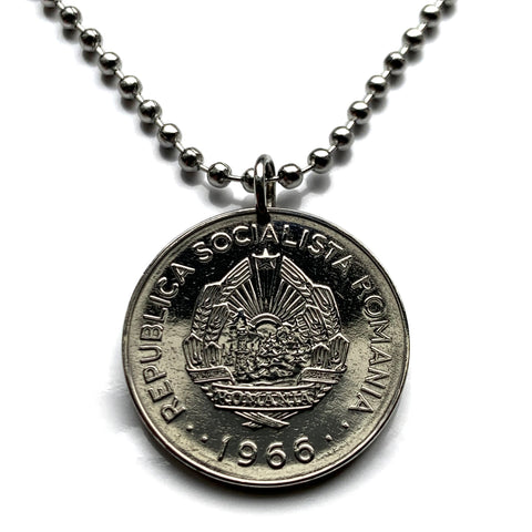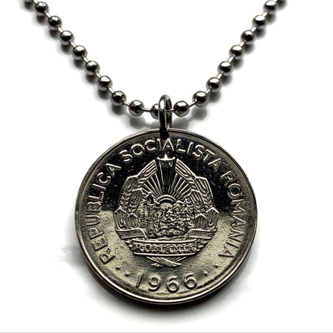 1966 Romania 1 Leu coin pendant necklace Romanian jewelry Socialist Republic Bucharest Moldavia Wallachia Brașov Sibiu Iași Constanța Craiova Bran Castle Balkans Dobruja Cluj-Napoca Timisoara Bukovina Dobrogea communist n000340