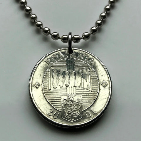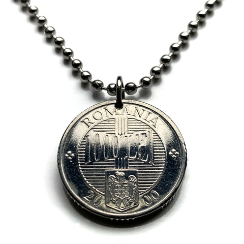 2000 Romania 1000 Lei coin pendant Romanian golden eagle Bucharest Orthodox cross Balkans Moldavia Wallachia Constantin Brancoveanu n002732